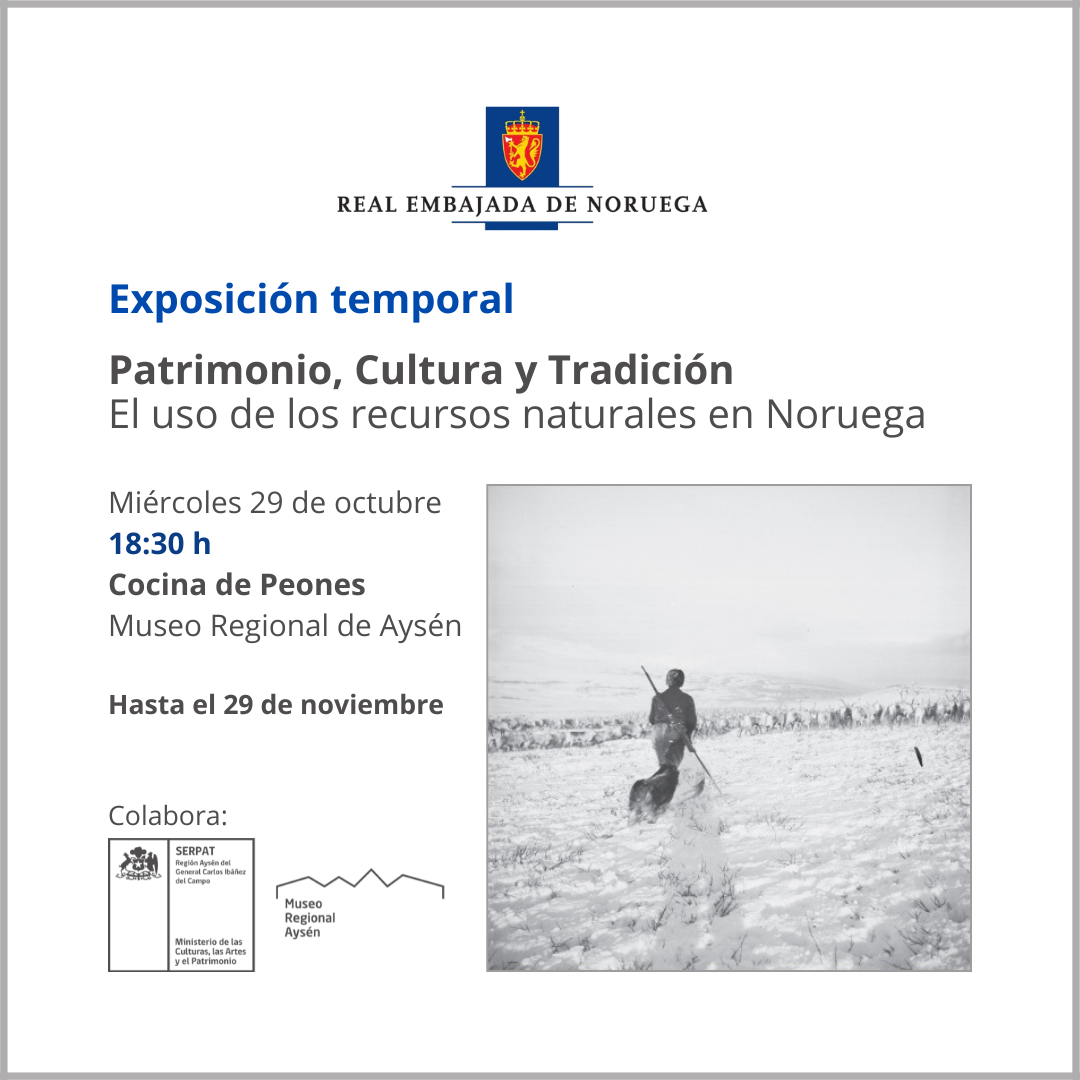 Exposición fotográfica preparada por la Embajada de Noruega, compuesta por imágenes históricas en blanco y negro que muestran el uso de los recursos naturales hace entre 50 y 100 años y también su uso actual.