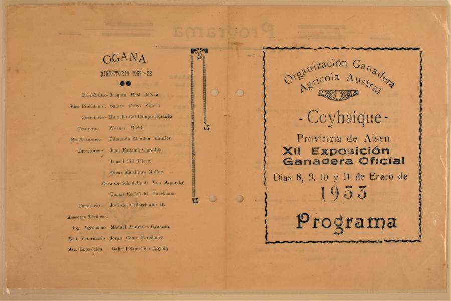 Sumamos a esta reseña, archivos de OGANA del Museo a los que se sumará este carnet de socio. Se trata de imágenes que forman parte del archivo fotográfico del Museo Regional de Aysén y un documento que trata del programa de la XII Exposición Ganadera Oficial de OGANA, llevada a cabo el año 1953.