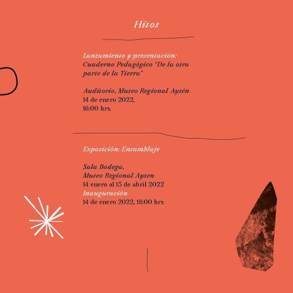 El pasado viernes 14 de enero, en el Museo Regional de Aysén, se realizó la presentación del Cuaderno Pedagógico “De la otra parte de la Tierra” y, posteriormente, se dio por inaugurada la exposición “Ensamblaje”. Ambas obras forman parte de un afanoso proyecto del equipo interdisciplinario integrado por Sebastián Peña, Alejandra Fuentes y María Jesús Faúndez.